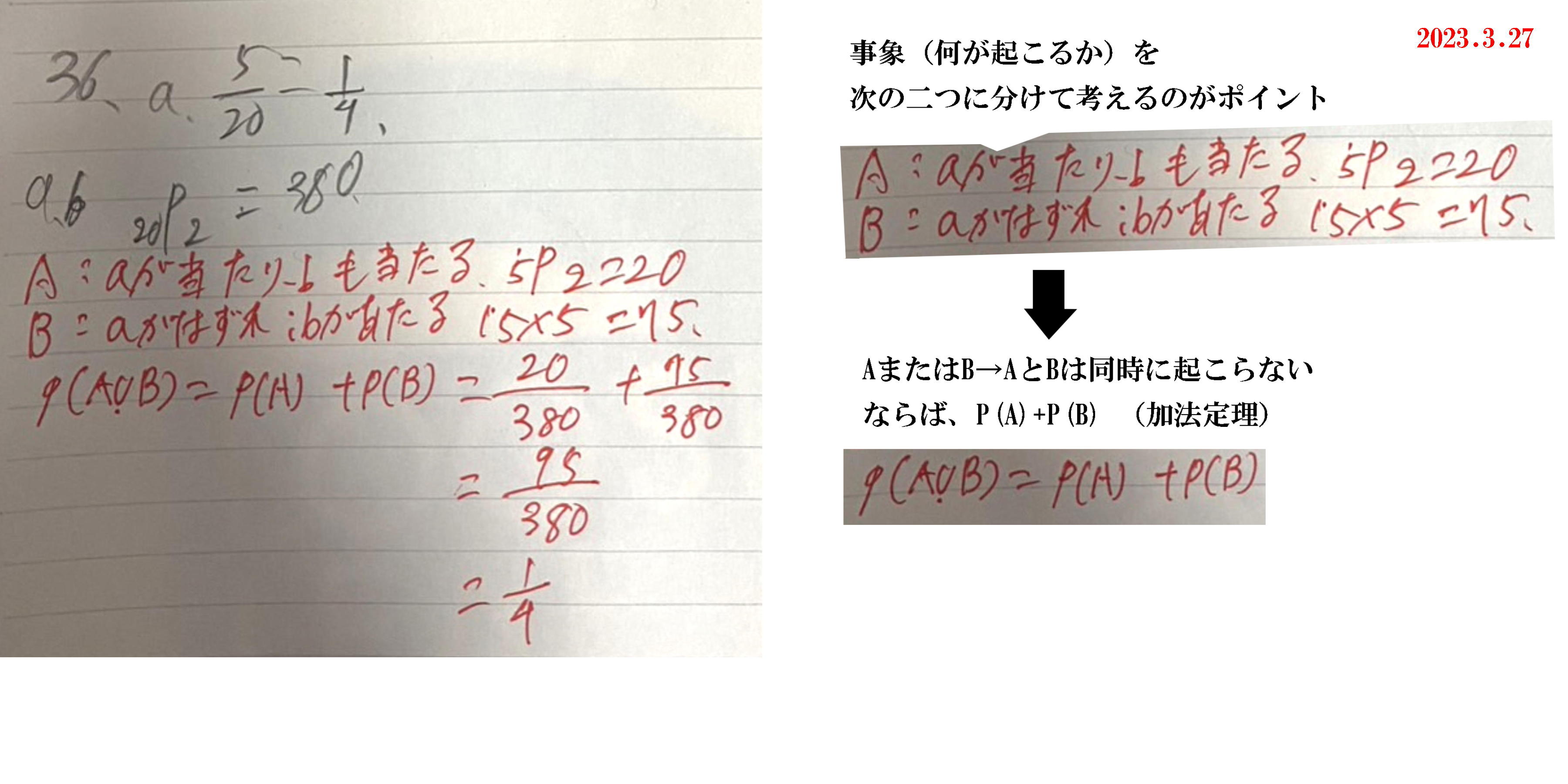 A-036 確率 確率の加法定理(順列)