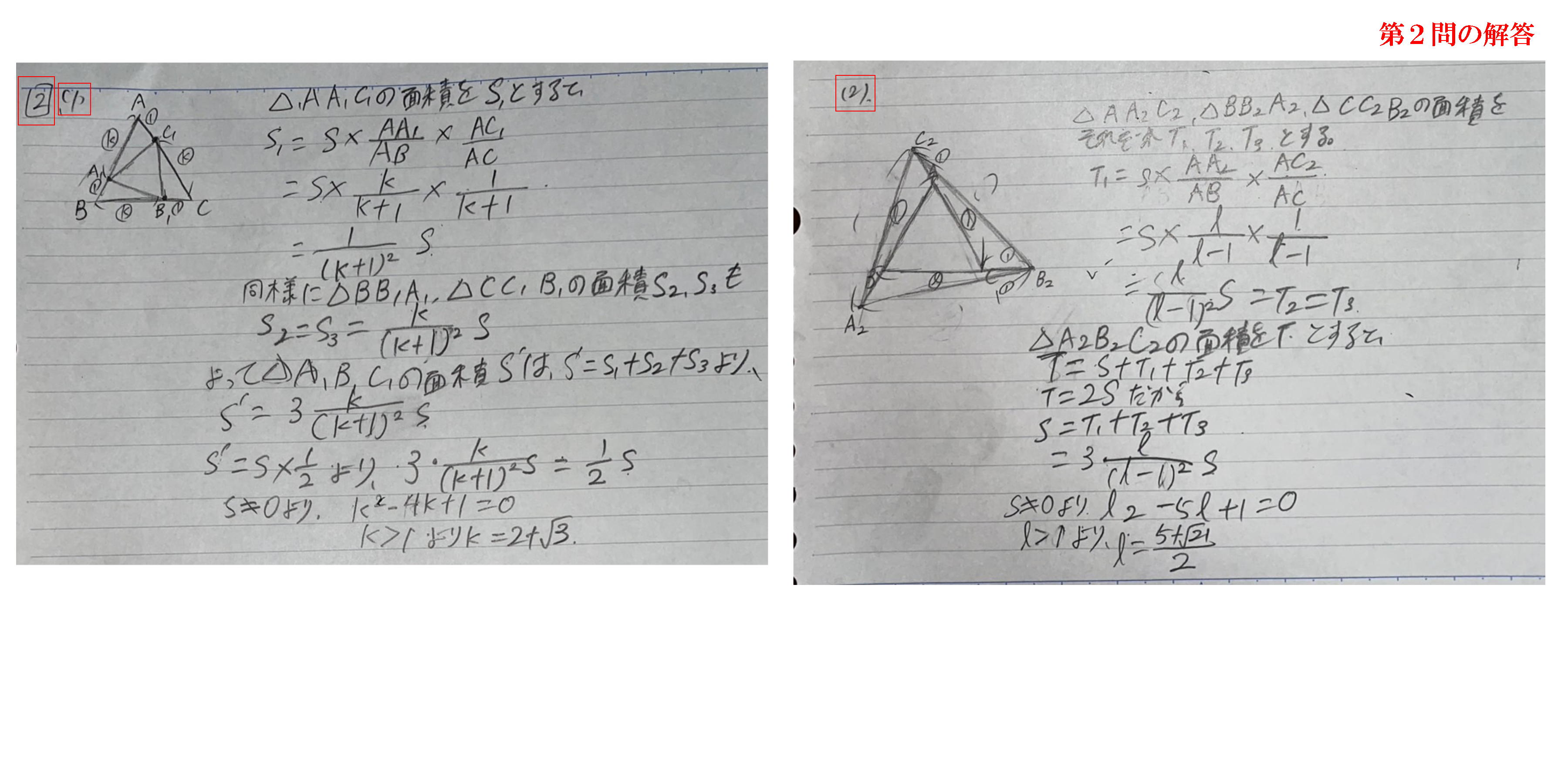 2回目答案(1)(2)